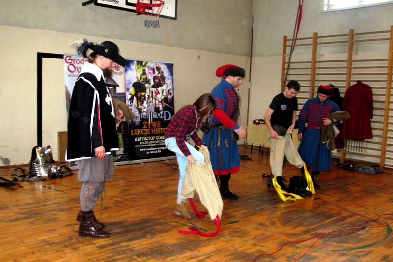 Uczniowie gimnazjum w trakcie lekcji żywej historii mieli okazję bawiąc się, zdobywać wiedzę historyczną z epoki nowożytnej, od czasów Jana Olbrachta do Rzeczypospolitej Obojga Narodów.