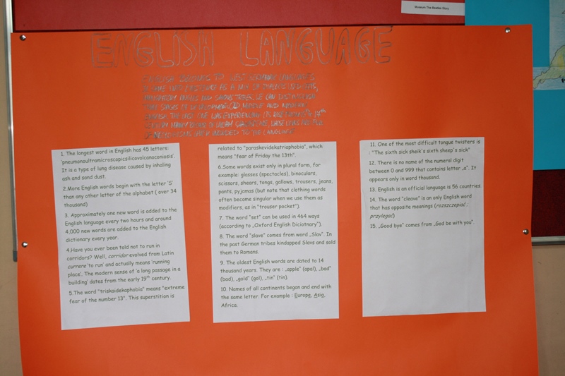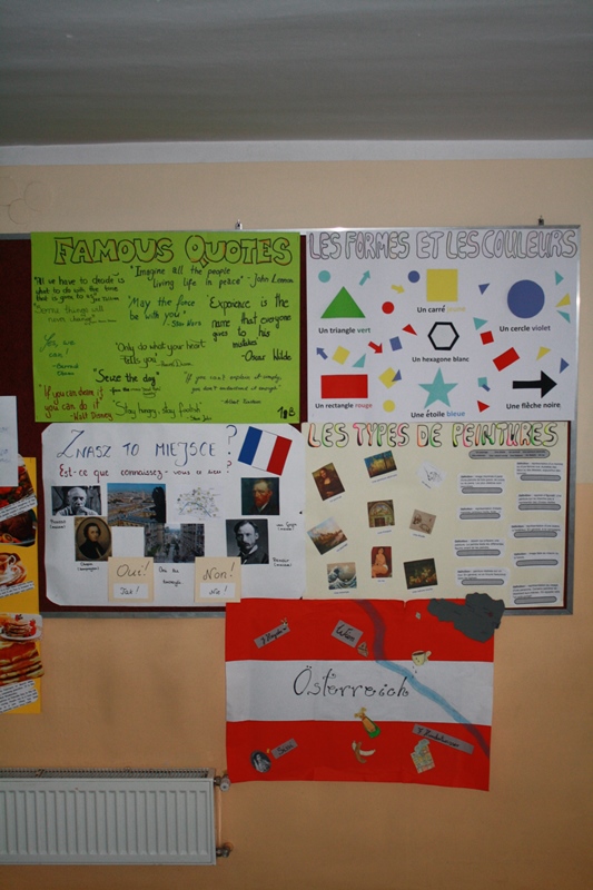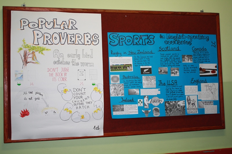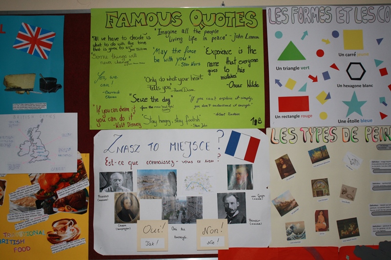 W tym roku uczniowie wybierali różne formy i tematy - poprzez prezentacje, quizy i konkursy, do tworzenia plakatów na temat języka i kultury krajów europejskich oraz delektowania się, na przykład, wyrobami cukierniczymi rodem z krajów anglosaskich. Ciasteczek niestety już nie ma, konkursy też rozstrzygnięte, ale plakaty można podziwiać w salach językowych i na korytarzu szkolnym.
