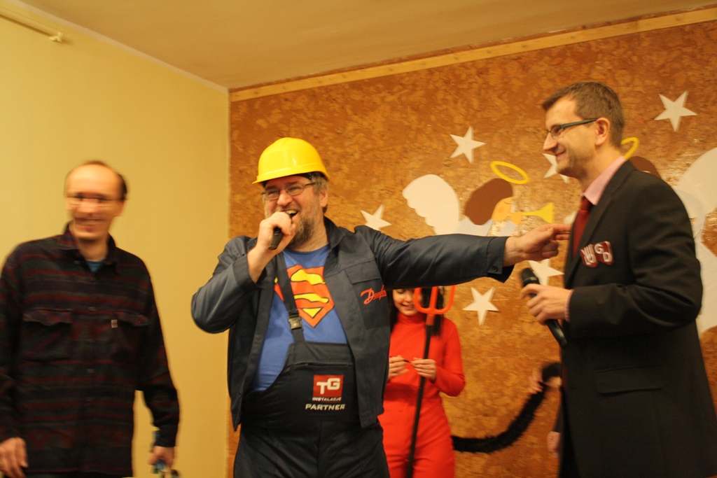 Potem pojawiła się pani Ayeb, która wyglądała toczka w toczkę jak pan Noj. Były też siły dobra i zła [panie Kluczykowska i Świgoń] i pan Izydorski, który tradycyjnie wystąpił w roli pana dyrektora Kozłowskiego. W tym momencie zauważyliśmy, że pan Kozłowski [ten prawdziwy] spogląda na wszystko z pewnym niepokojem… Podzielaliśmy Jego uczucia…