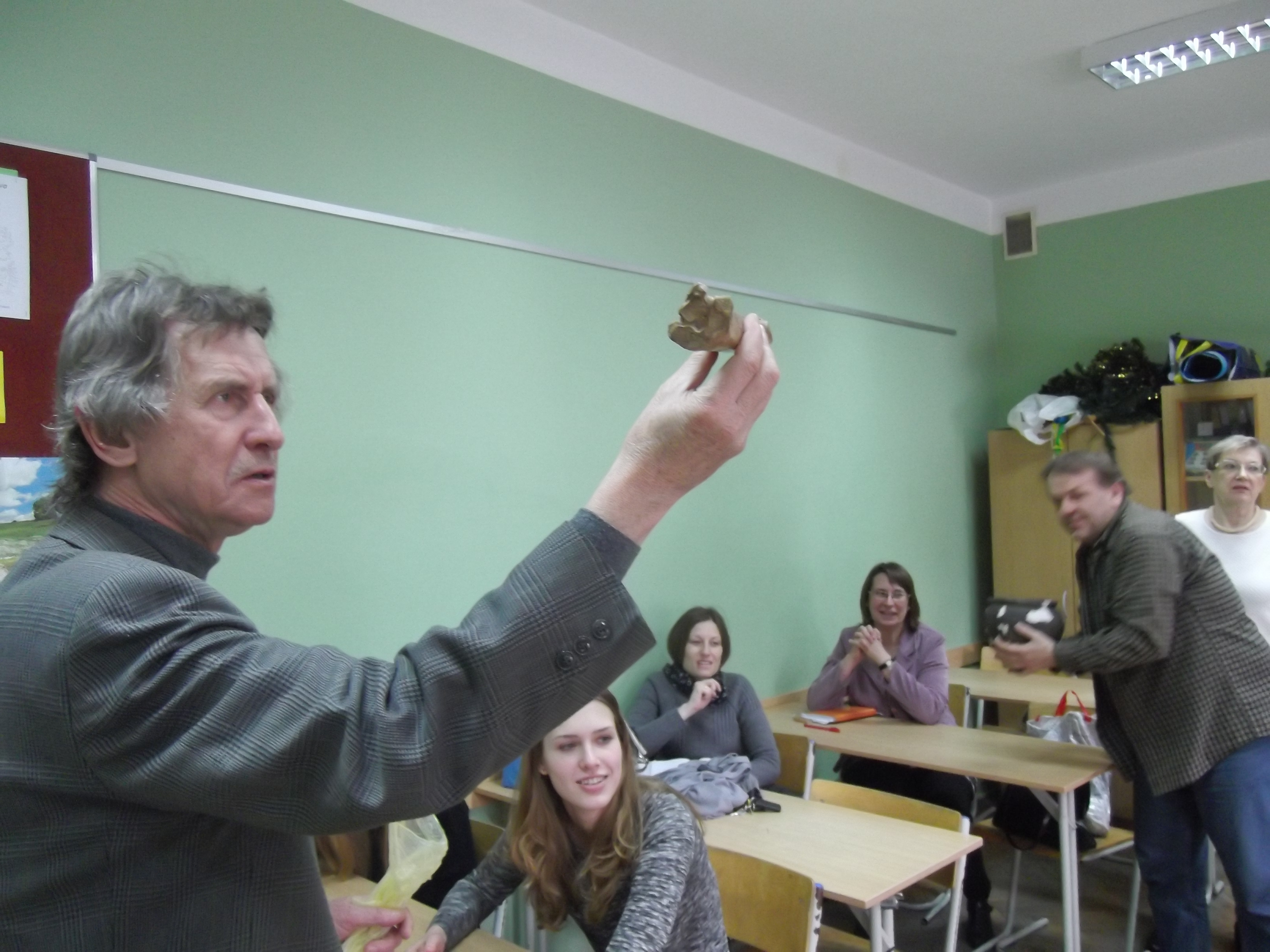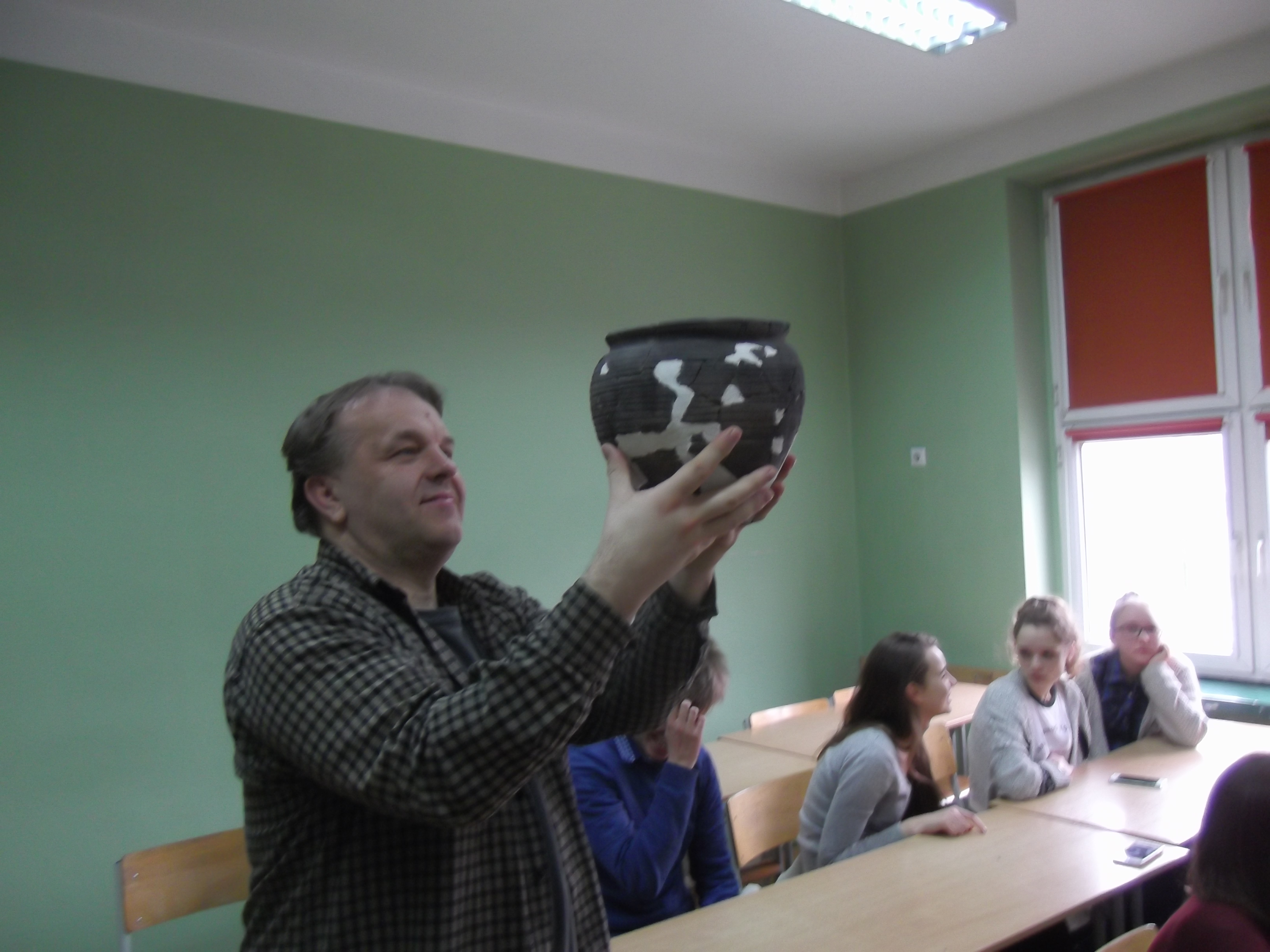 Uczniowie uczestniczyli w zajęciach z panią prof. Hanną Koćką-Krenz i, równolegle, z archeologiem Andrzejem Sikorskim.