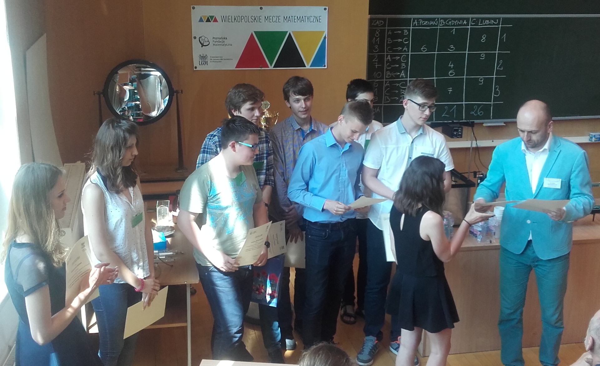 Drużyna – w składzie: Michał Matak (kapitan, kl. 3ga), Łukasz Bielejewski, Krzysztof Jajeśnica (3gb), Michał Fredrych, Dominika Kałek, Katarzyna Kubiak, Patryk Morawski, Michał Pilawski, Ewa Rakowska (3ga), Maksym Ratajczyk (1ga), wywalczyła III miejsce w Międzyregionalnym Meczu Matematycznym Gimnazjalistów pomiędzy reprezentacjami Dolnego Śląska, Pomorza i Wielkopolski.