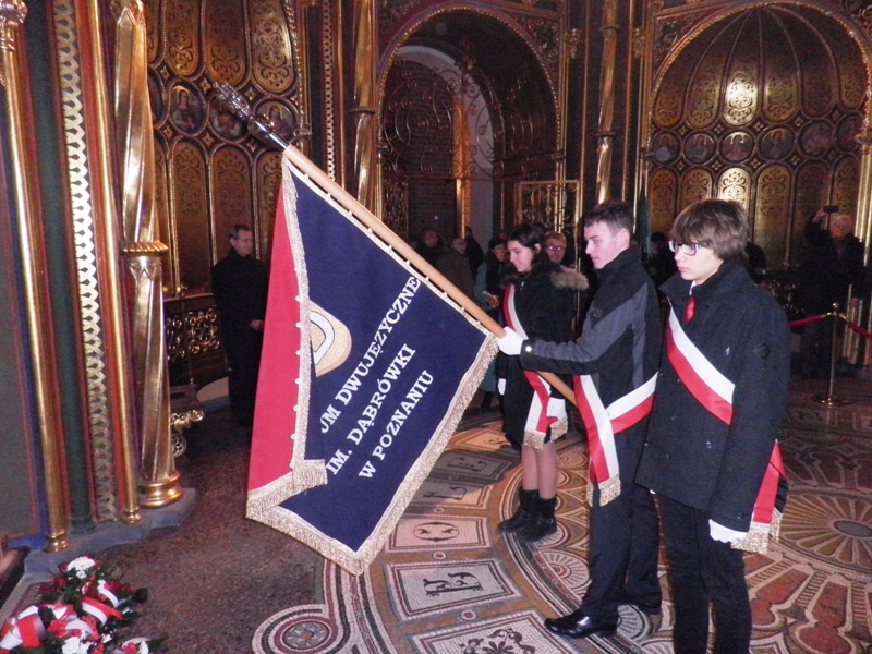 W niedzielę 16.11.2014 r. w Katedrze odbyła się msza św. w intencji Pierwszych Piastów oraz Patronki naszej szkoły Dąbrówki. Uroczystości przewodniczył ks. biskup Damian Bryl, który również wygłosił homilię. Po mszy złożono kwiaty przed grobowcem Mieszka I i Bolesława Chrobrego w Złotej Kaplicy. W uroczystości brały udział poczty sztandarowe gimnazjum w składzie: Mikołaj Rybka, Łukasz Skoczylas, Agnieszka Lenart oraz liceum: Mikołaj Lichocki, Agnieszka Fudala, Zuzanna Daszyńska, dyrektor Paweł Kozłowski, wicedyrektor Krzysztof Ratajczak, pani Maria Dolata, przedstawiciele młodzieży oraz absolwentów Dąbrówki. kr