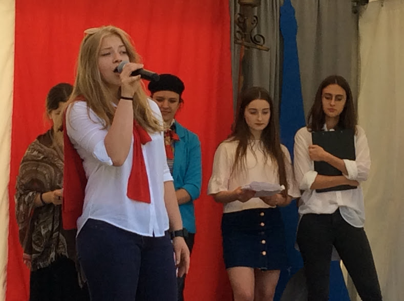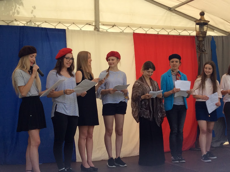 Uczennice klasy 2b, 2a i 1c przygotowały pod kierunkiem pani Anny Jabczyńskiej program słowno-muzyczny przybliżający publiczności kulturę i historię Francji. [AJ]