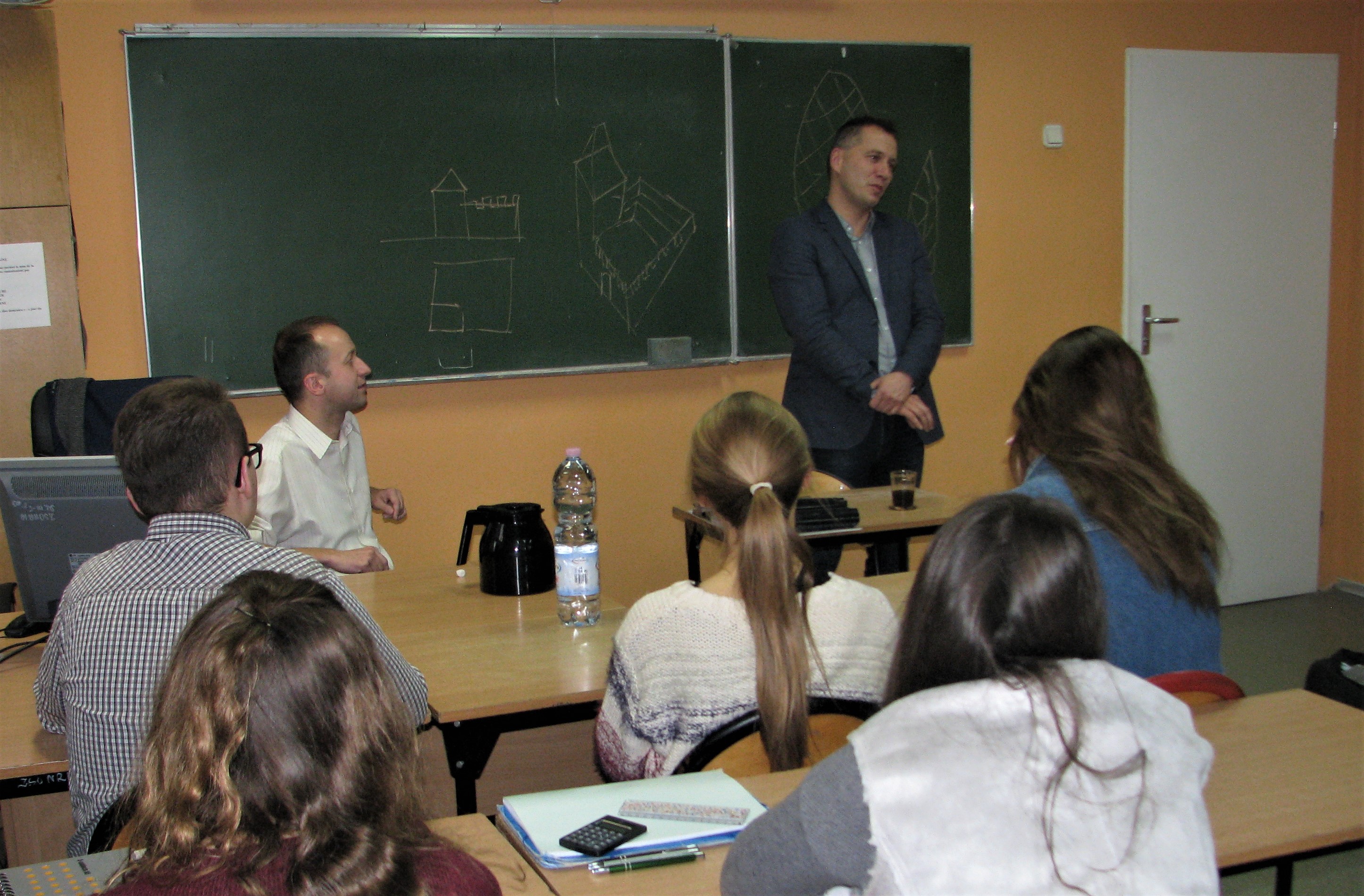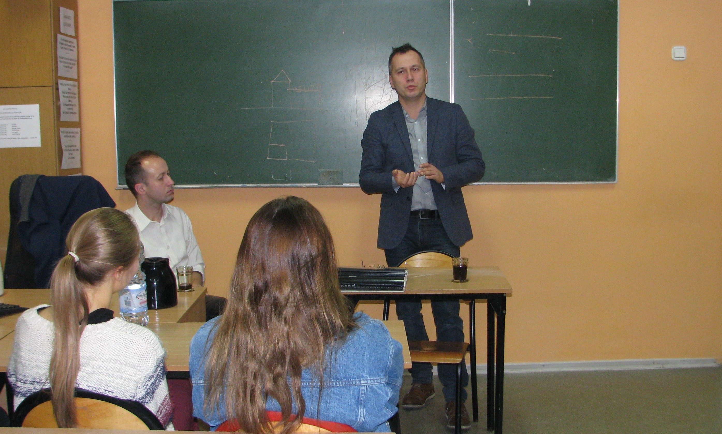 Michał Mytkowski zaprosił tym razem kolegę architekta Marcina Bartza, który podzielił się refleksjami na temat mechanizmów decydujących o pomyślnym wchodzeniu w zawód i osiąganiu pozycji w środowisku architektów. Uczniowie dowiedzieli się, co należy zrobić, aby o wyborze zawodu nie decydował przypadek a przemyślany plan działania.