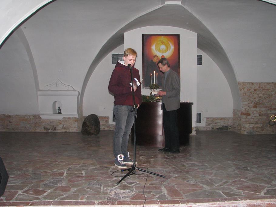 Tego samego dnia wieczorem w Samotni św. Rafała w podziemiach klasztoru oo. Karmelitów na Wzgórzu św. Wojciecha w ramach Piwnicy Duchowej zebrali się autorzy tej antologii w rozszerzonym składzie. Dołączyli do naszej licznej grupy poeci znani w środowisku poznańskim. Swój udany debiut literacki miał Rafał Piechocki - były nauczyciel Dąbrówki. Spotkanie prowadził jak zwykle pan Andrzej Sikorski, którego wiersz zamieszczamy poniżej. [MD]