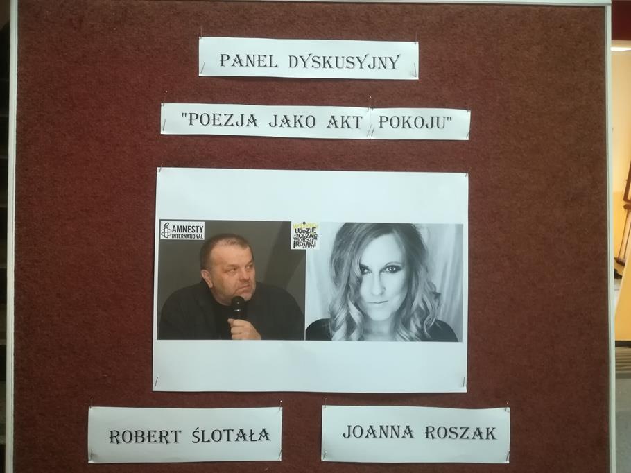 Panel poetycki z Joanną Roszak i Robertem Ślotałą "Poezja jako akt pokoju".