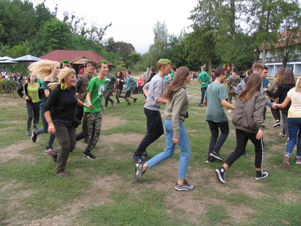 Na miejscu, po zjedzeniu pysznych kiełbasek, pomidorówki i drożdżówek, zespoły klasowe starły się w zawodach sportowych, śpiewały hymn szkoły, recytowały wiersze i tańczyły belgijkę.