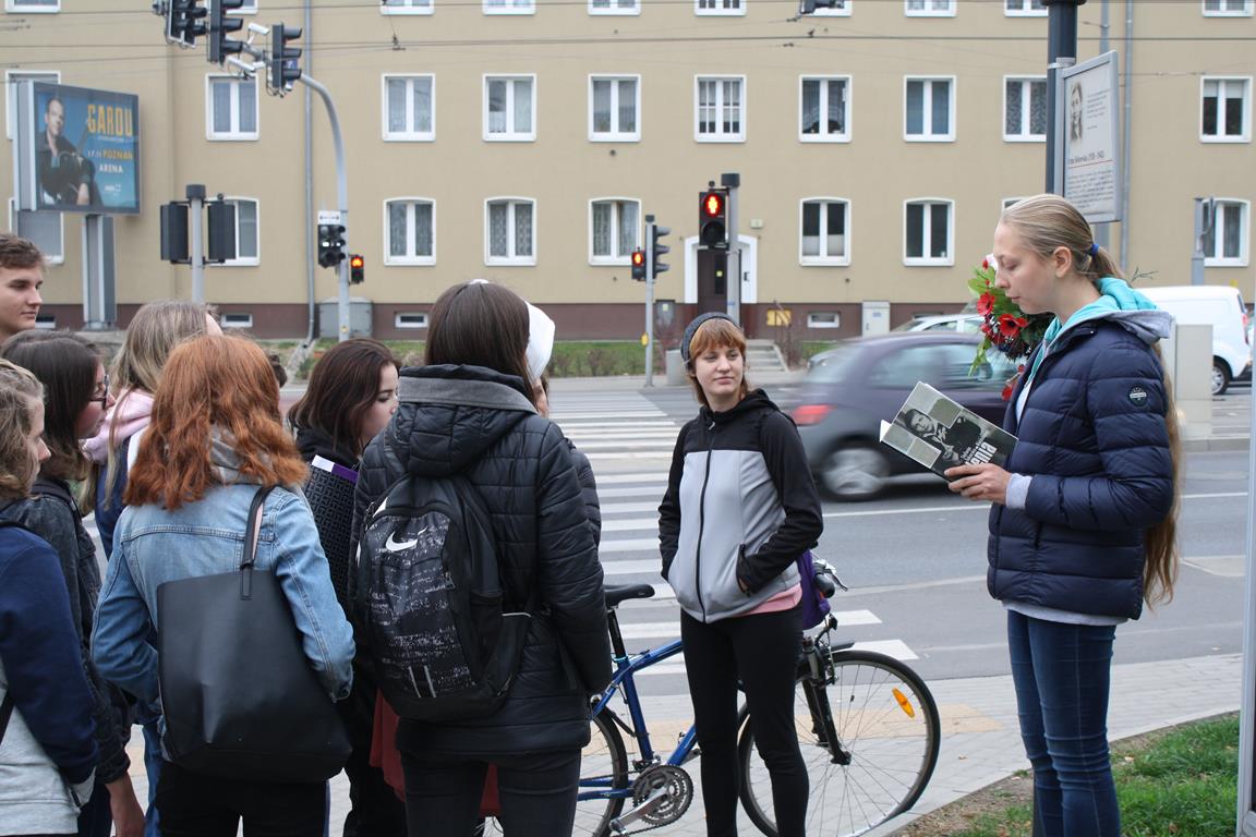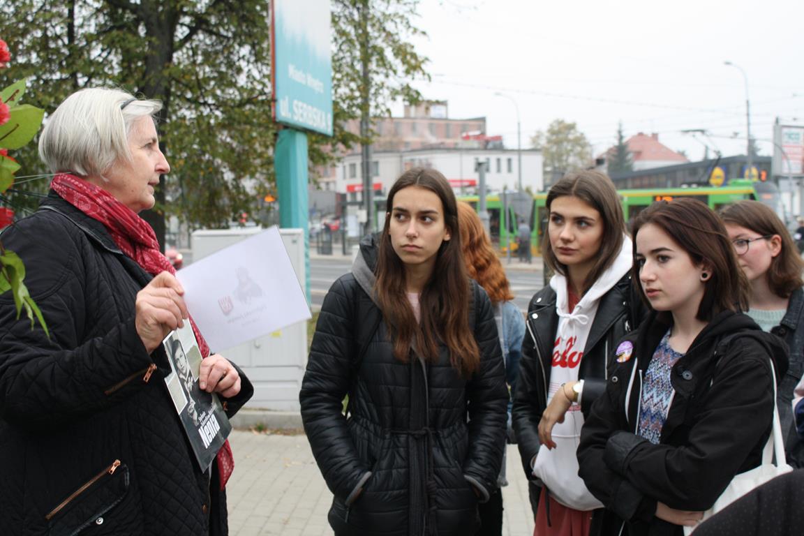 Grupie uczniów pod opieką pań Magdaleny Dyzert i Marii Dolaty towarzyszyły absolwentki szkoły - Dorota Żaglewska i Grażyna Olszewska, które czynnie włączyły się w opowieść o naszej bohaterce.
