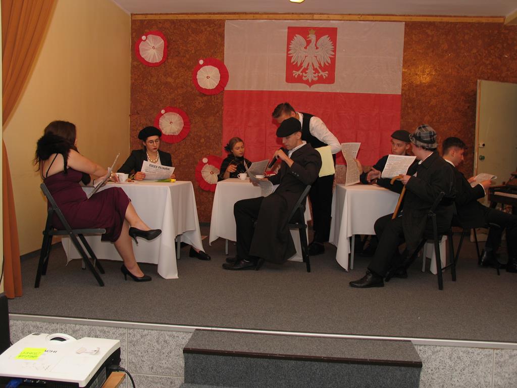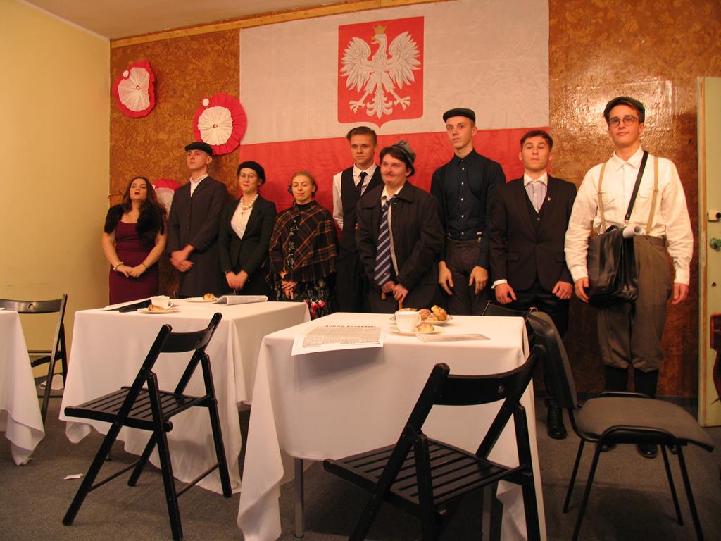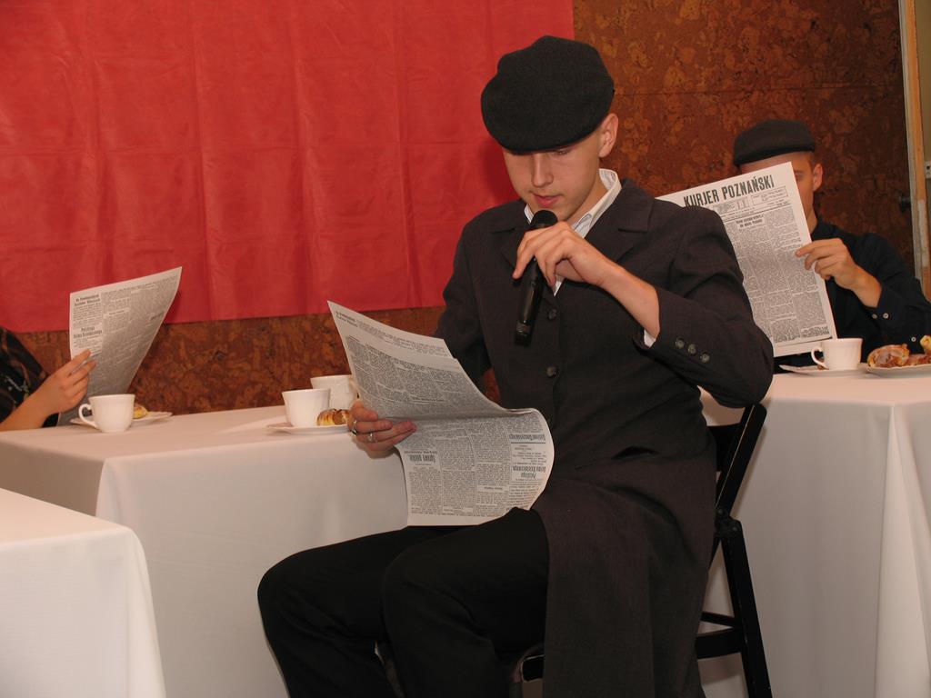 Uczniowie klas pierwszych rywalizowali w konkursie wiedzy o historii szkoły a klasa 2a przedstawiła teatralną inscenizację – przenieśliśmy się do poznańskiej kawiarni z 1918 roku, obserwując reakcje poznaniaków na doniesienia prasowe o ważnych wydarzeniach na arenie międzynarodowej i krajowej.