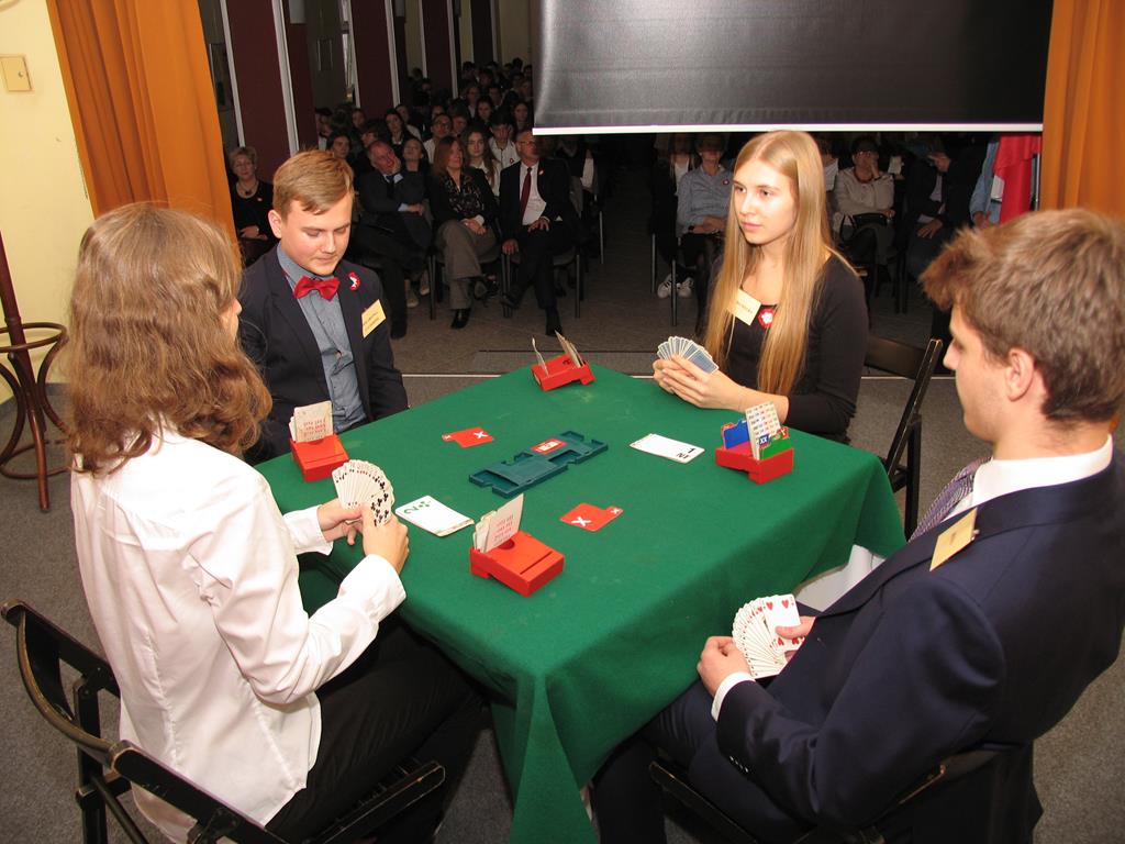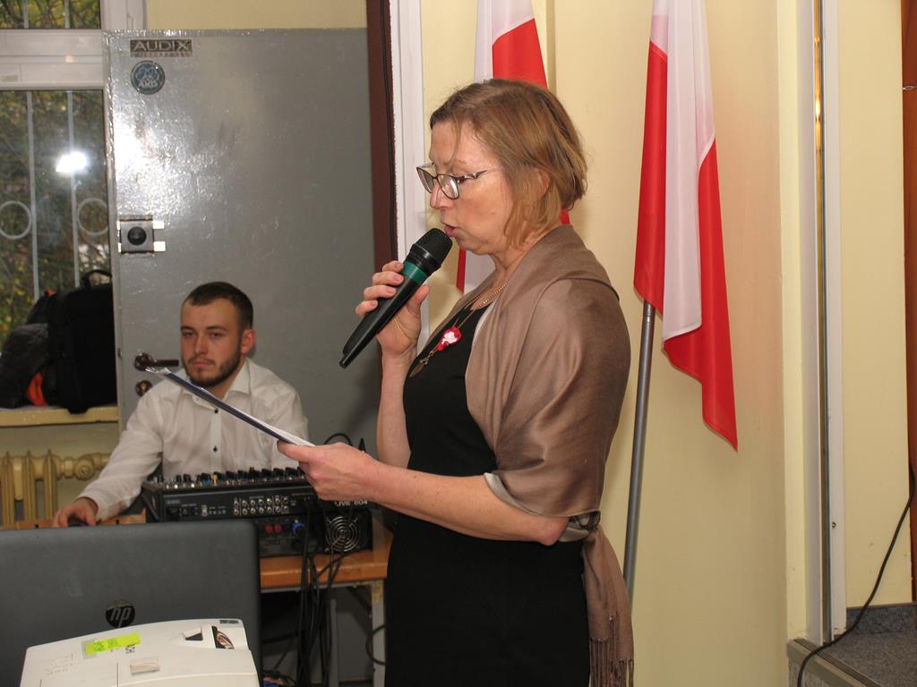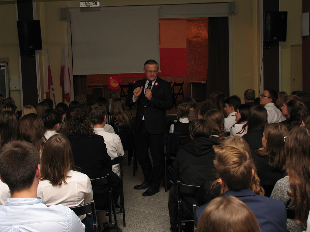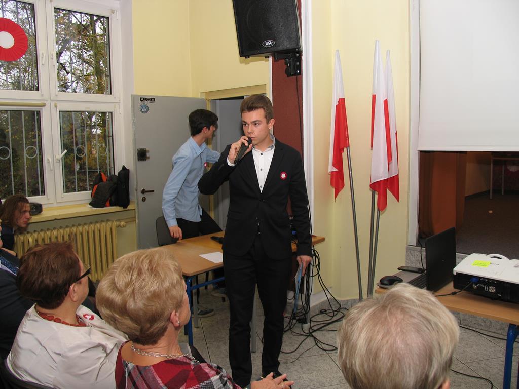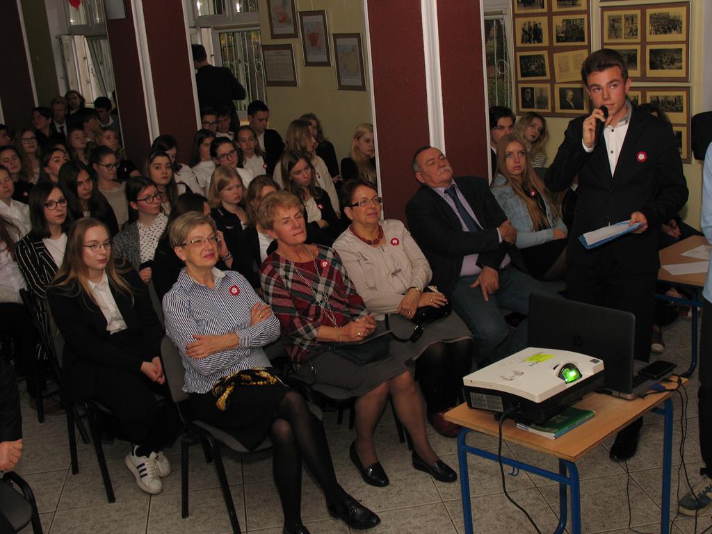 W szkolnej auli wysłuchaliśmy ciekawych wykładów Gości. Profesor UAM dr hab. Przemysław Matusik opowiedział o drogach do niepodległości, pani Anita Dałkowska – przewodnicząca Rady Rodziców – podzieliła się refleksjami o różnych aspektach wolności a pani Grażyna Sobierajska-Mormol ze Stowarzyszenia Przyjaciół Szkoły przypomniała losy osób ważnych dla historii szkoły. Swoje wykłady miali też pan dyrektor Paweł Kozłowski i Karol Maćkowiak z klasy 2e, który przy pomocy koleżanek i kolegów ze szkolnego Klubu Brydżowego przedstawił walkę o niepodległość, zwracając uwagę na analogię tych wysiłków do licytacji w czasie rozgrywki brydżowej. Absolwentki - pani Grażyna Sobierajska-Mormol i pani Wacława Wawrzyniak-Małecka [Stowarzyszenie Przyjaciół Szkoły] - w barwny sposób opowiedziały uczniom klas pierwszych, jak wyglądało szkolne życie w czasach ich młodości.