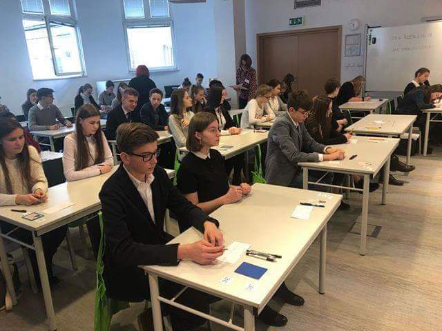 Naszą szkołę reprezentowało 12 uczniów, którzy znaleźli się w gronie 100 najlepszych gimnazjalistów z całej Polski. Konkurs przebiegał dwuetapowo i składał się z części pisemnej i ustnej. Dzięki miłej atmosferze, najbardziej stresująca dla uczestników ustna część egzaminu okazała się być nowym, przyjemnym doświadczeniem. Podczas eliminacji długi czas oczekiwania umilał konkursowiczom aktor Klaudiusz Kaufmann, pod którego okiem uczniowie, czytając historyjkę detektywistyczną, mogli zaprezentować swoje aktorskie umiejętności.