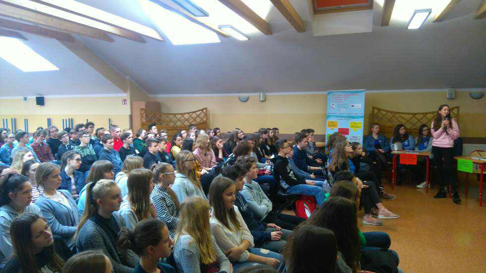 Przedstawiliśmy uczniom klas 3 gimnazjum oraz 8 szkoły podstawowej w skrócie, jak będzie przebiegał proces rekrutacji do Dąbrówki w roku 2019. Wyjaśniliśmy młodzieży zasady klasy dwujęzycznej, jak i jakie przedmioty na danym profilu są rozszerzane.