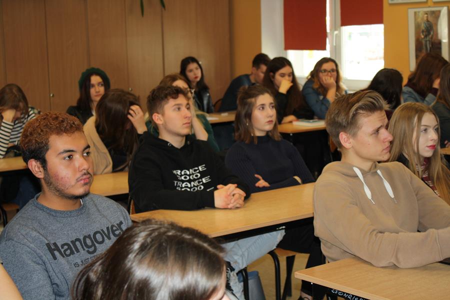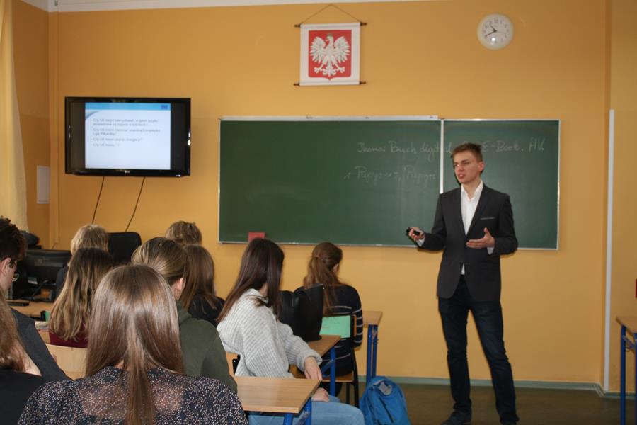 Dzięki dużej otwartości naszego gościa prelekcja przebiegała w miłej i swobodnej atmosferze, a dzięki przygotowanej przez Michała prezentacji multimedialnej, wzbogaconej krótkim quizem, udało nam się zapamiętać więcej istotnych szczegółów. [Damian Stessel, 2A]
