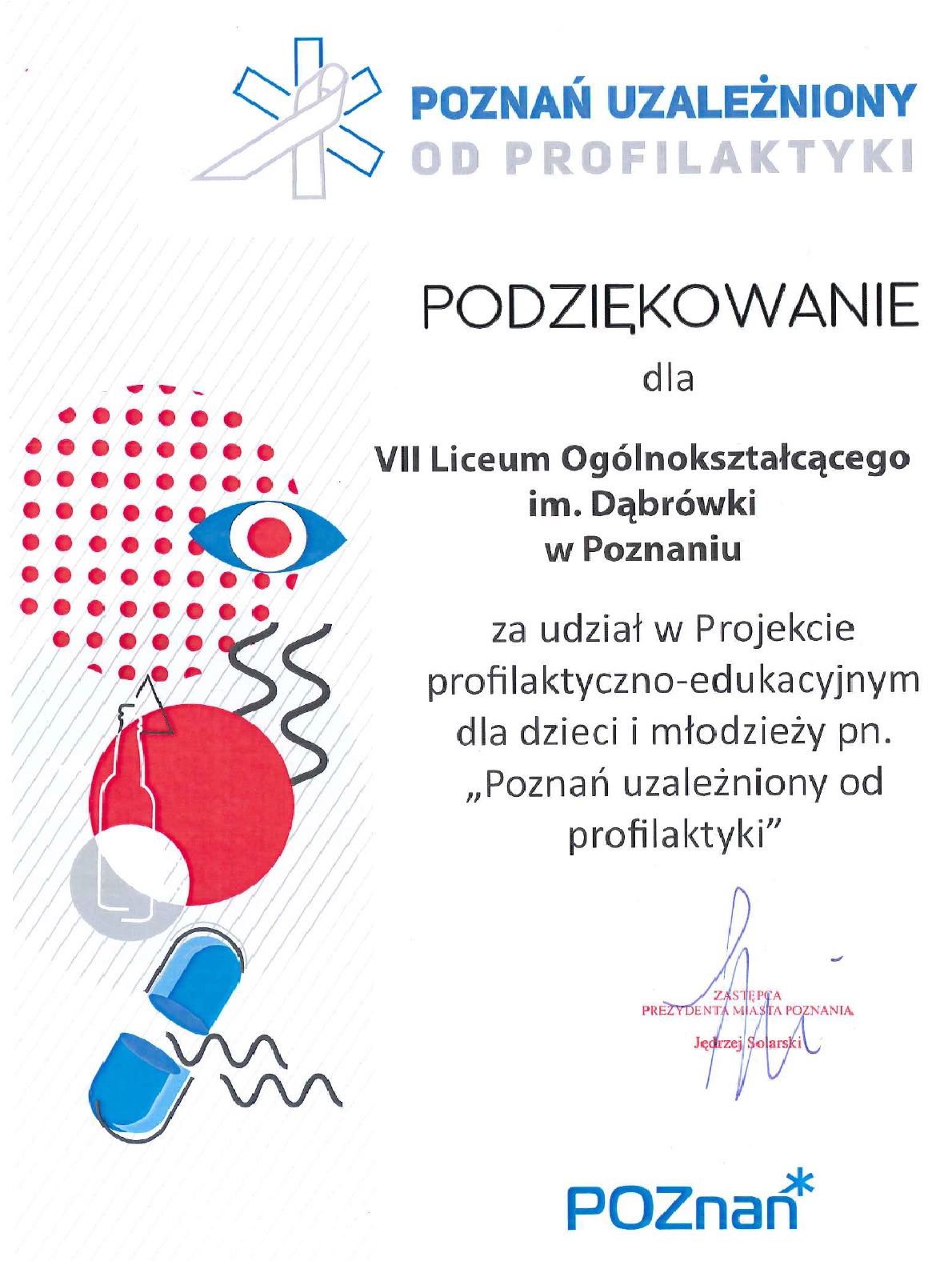 11 listopada poczet sztandarowy VII Liceum Ogólnokształcącego im. Dąbrówki wraz z opiekunami i dyrektorem Pawłem Kozłowskim uczestniczył w uroczystościach związanych z setną rocznicą odzyskania przez Polskę niepodległości, na zabytkowym Cmentarzu Jeżyckim przy ul. Nowina.