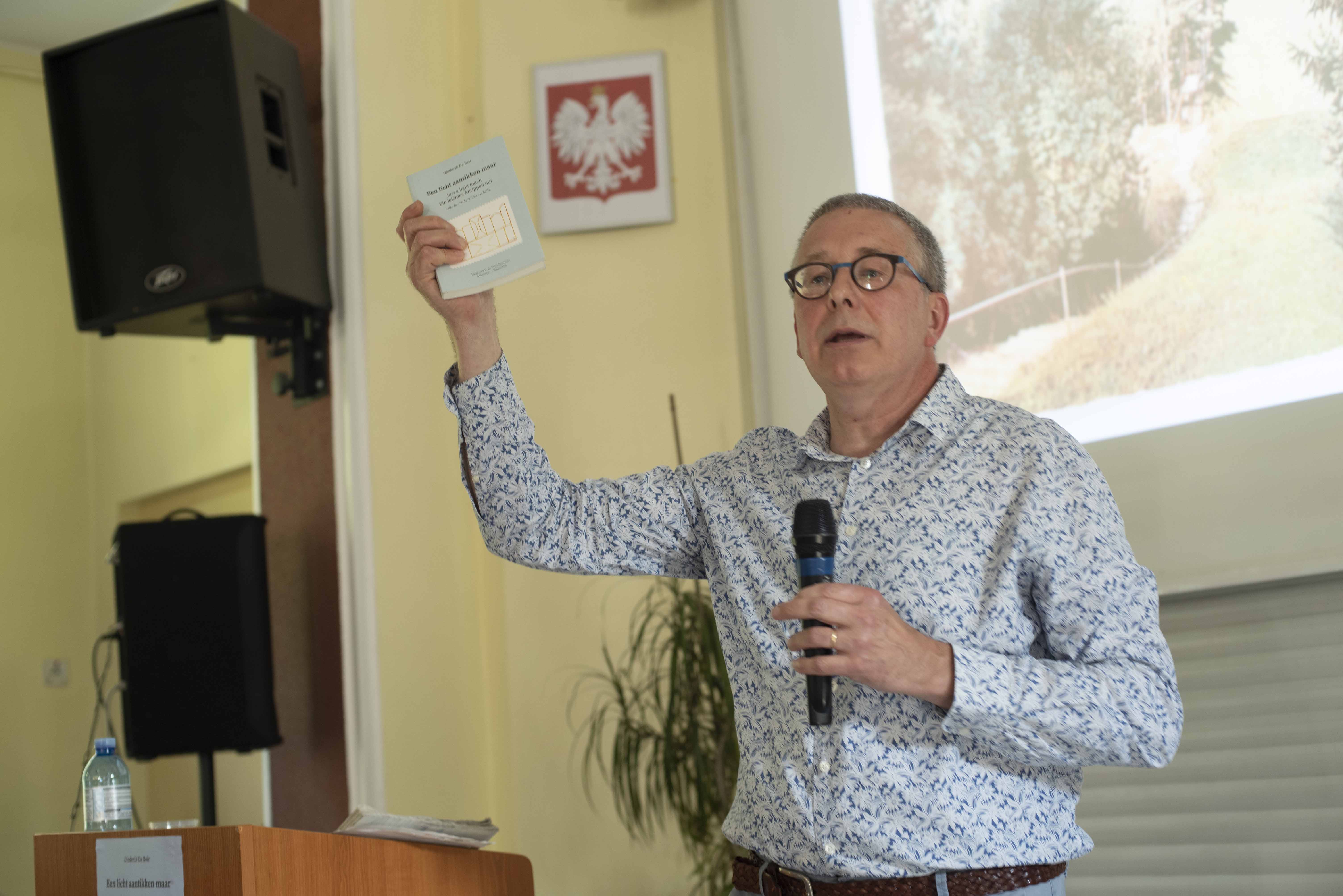 12. września w Dąbrówce mieliśmy zaszczyt gościć Diederika De Beira (Belga), ciekawego człowieka, który dawno zafascynował się przepięknym dziełem Van Eycka zwanym "Ołtarzem Gandawskim", od wielu lat interesował się też niezwkle krótką, ale pełną treści, formą wiersza określaną - haiku. Połączył te dwie pasje, a nawet "zaraził" nimi innych i wydał książkę. Skłonił poetów wielu krajów do napisania haiku, inspirowanych detalami wielkiego, malarskiego dzieła flamandzkiego mistrza.