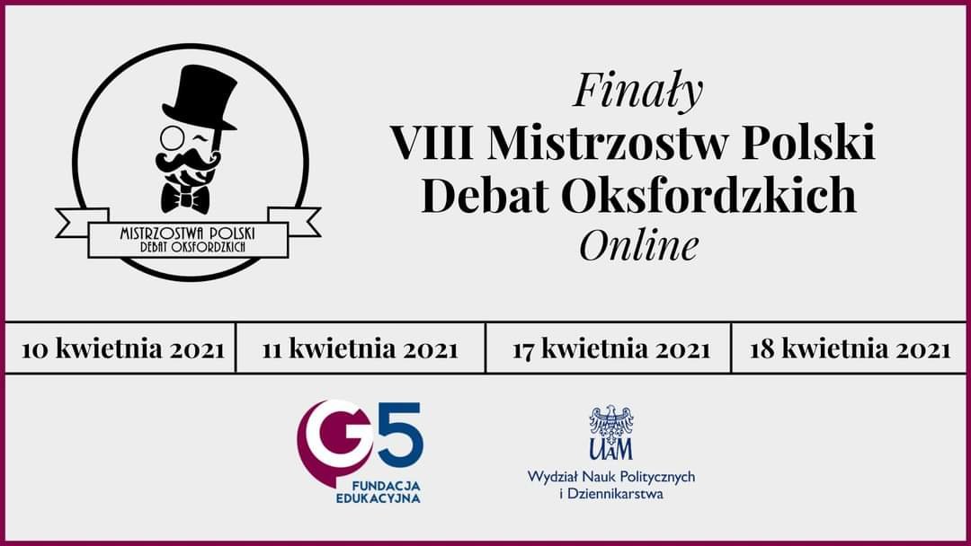 Po czterech etapach zmagań w VIII Mistrzostwach Polski Debat Oksfordzkich drużyna z naszej szkoły wygrała ten morderczy turniej! W debacie finałowej pokonała V LO z Poznania stosunkiem punktów 57:50, a wcześniej m. in. warszawskie liceum im. Staszica czy V LO z Krakowa. Oto mistrzowski skład zgodnie z pozycją w drużynie: Jakub Radke (IIga), Wiktor Chałupniczak (IIga), Natalia Adamska (IIga) i Kinga Stańczak (IIId). Mistrzostwo nie jest jedynym sukcesem naszych zawodników! Wiktor w konkursie indywidualnym został najlepszym mówcą Mistrzostw, a Kinga zajęła czwarte miejsce.