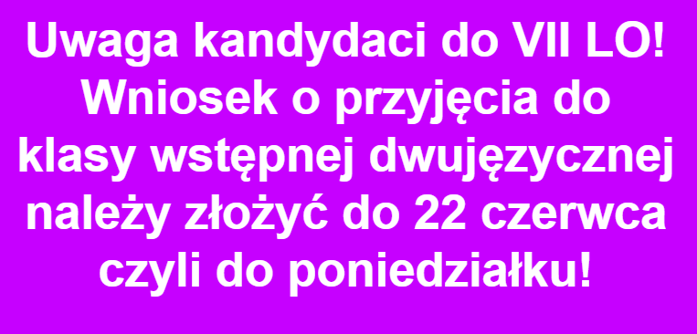Wniosek należy złożyć do 22 czerwca. 29 czerwca o godzinie 12 kandydaci do tej klasy przystępują do sprawdzianu predyspozycji językowych.