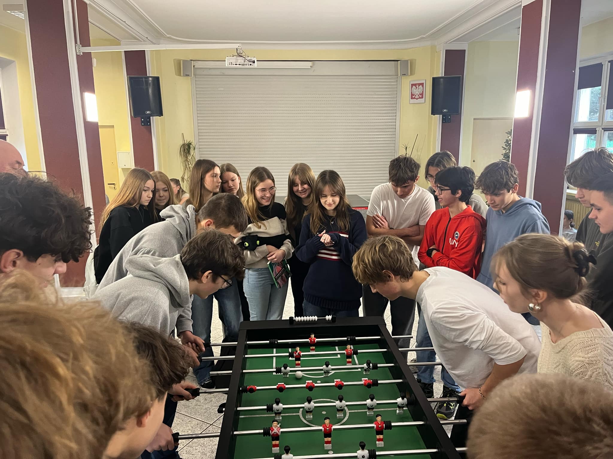 Dzisiaj odbył się finał turnieju piłkarzyków. Po emocjonującym meczu zwycięzcami okazali się broniący tytułu Oliwier Gmerek i Hania Kandziora z 2e, którzy pokonali Maxa Geigera i Igora Lipieckiego z 4d wynikiem 5:10, 10:9 , 10:7. Gratulujemy!