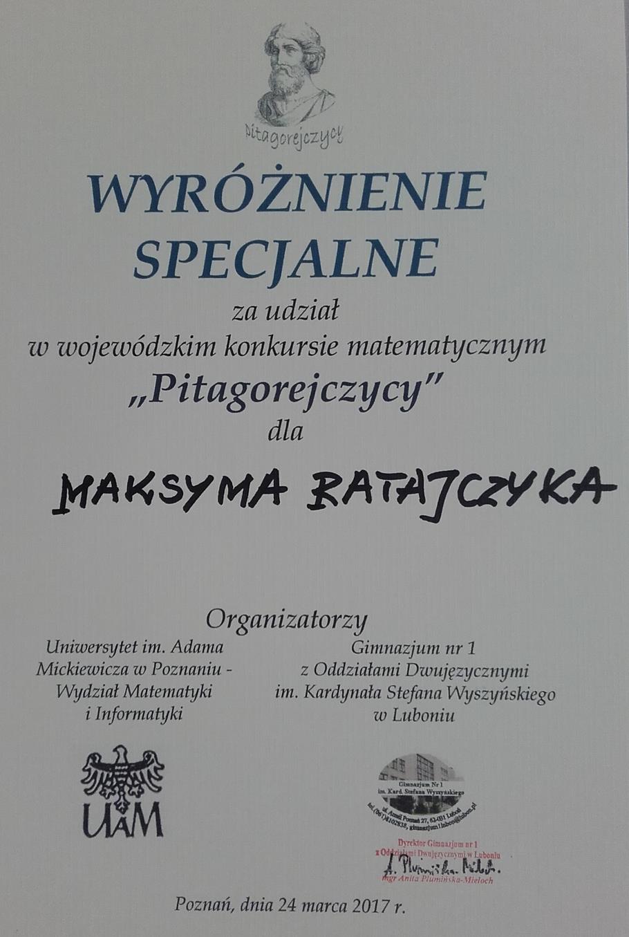 24 marca 2017 roku na Wydziale Matematyki i Informatyki UAM odbyła się X edycja wojewódzkiego konkursu matematycznego „Pitagorejczycy” dla uczniów gimnazjum.
