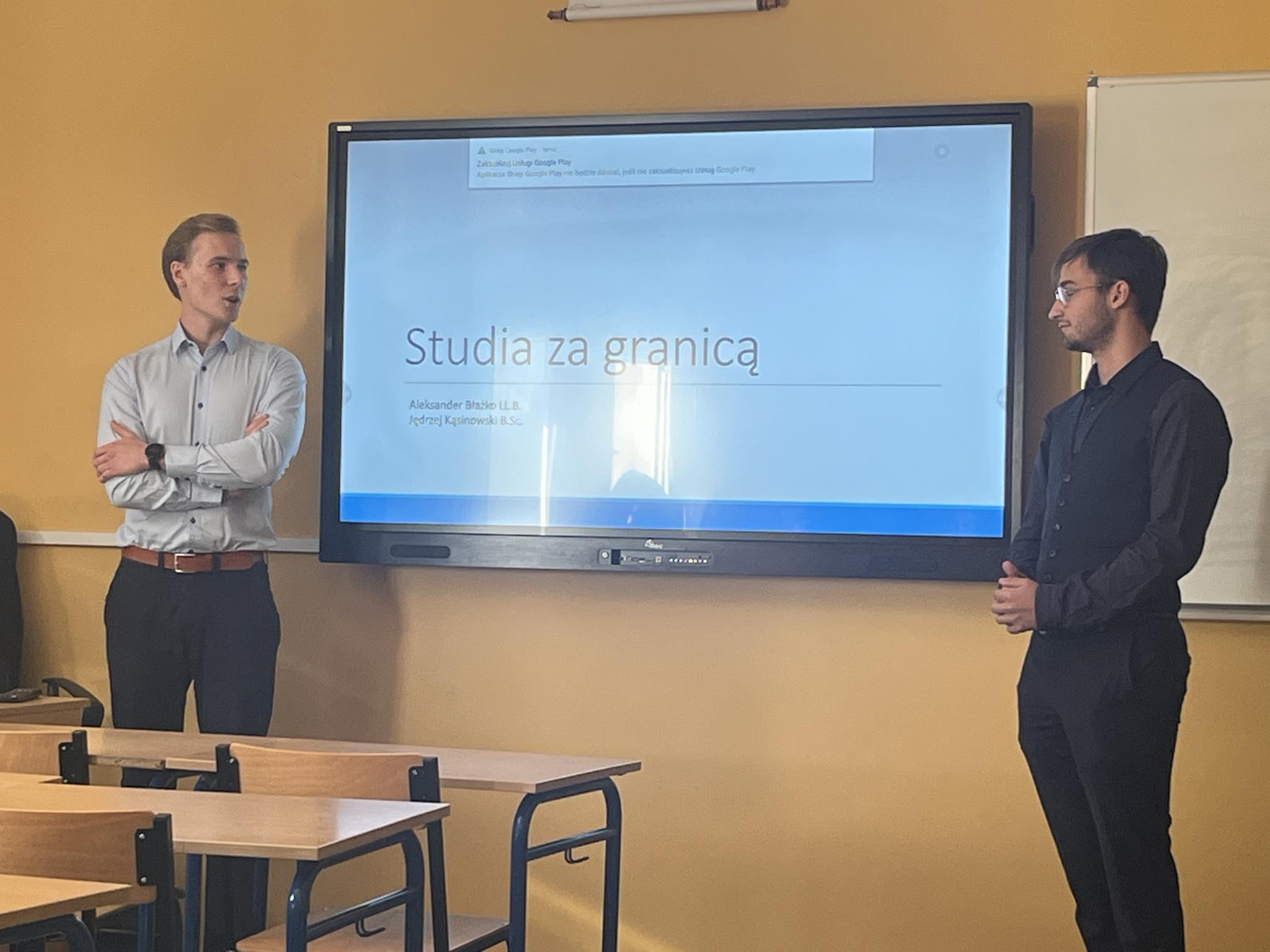 Jędrzej Kąsinowski i Akeksander Błażko opowiadali o realiach studiów w Niemczech, rekrutacji, organizacji przed wyjazdem i potencjalnych trudnościach.