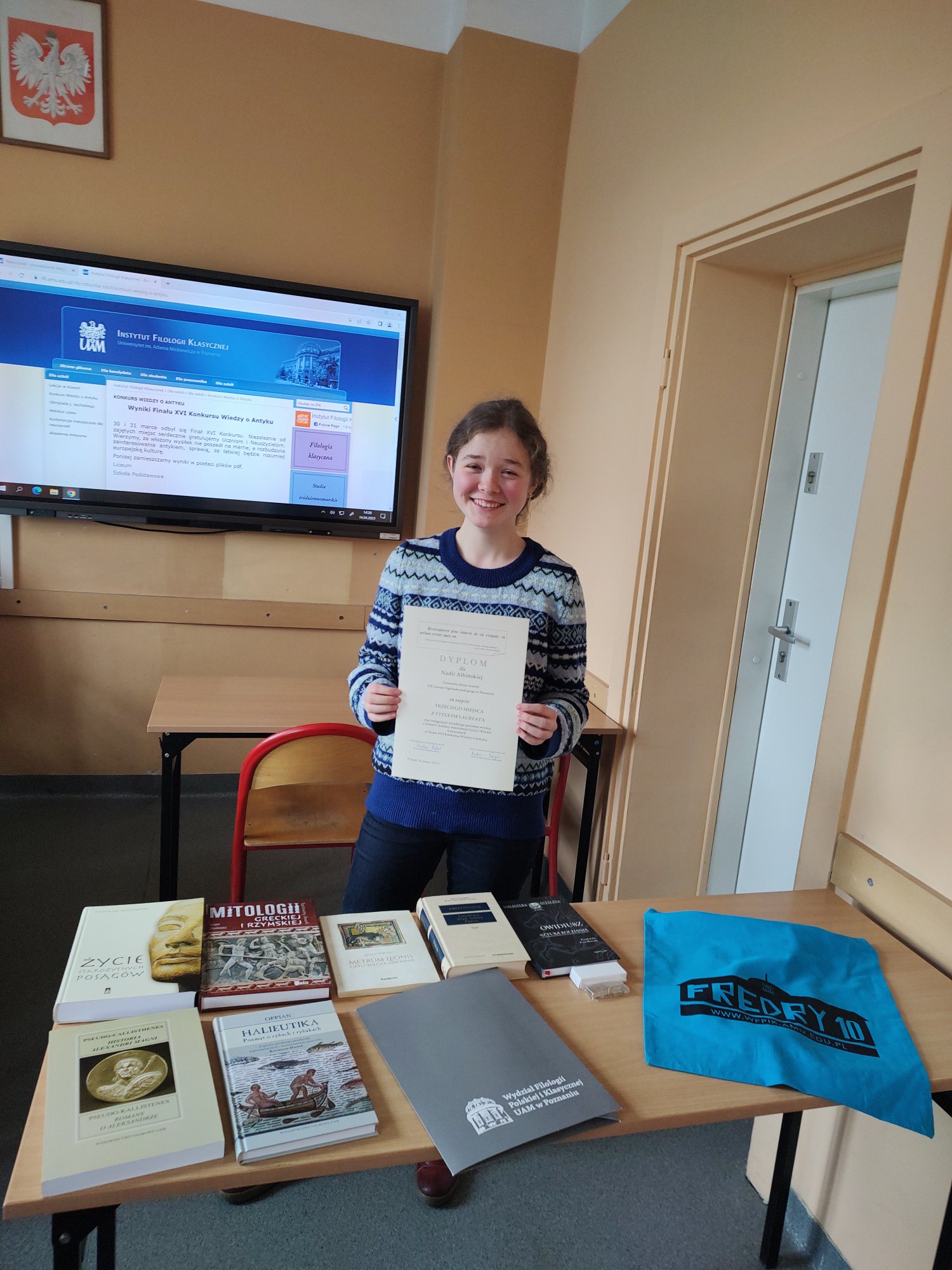 30 marca w Instytucie Filologii Klasycznej Uniwersytetu im. Adama Mickiewicza w Poznaniu odbył się finał XVI Konkursu Wiedzy o Antyku, w którym brali udział uczniowie wielkopolskich liceów. Nasi uczniowie wykazali się ogromną, fachową wiedzą w części pisemnej i ustnej konkursu.