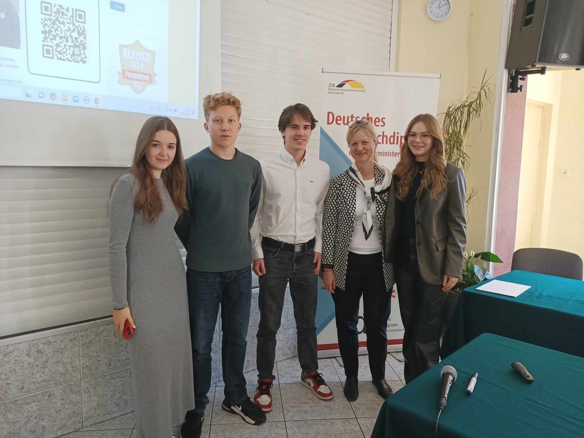 Do symulacji egzaminacyjnych przygotowali się koledzy i koleżanki z klas trzecich z czterech poznańskich liceów. Dąbrówkę reprezentował Michał Grabowski z klasy 3E, który przygotował prezentację na temat: Sollte die tägliche Nutzung des Smartphones für Kinder und Jugendliche zeitlich begrenzt werden?