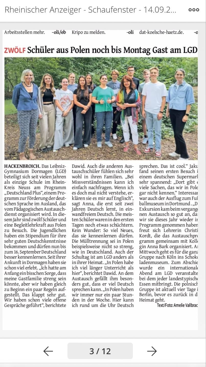 To było bardzo ciekawe doświadczenie, które pozostanie ze mną na długo. Poznałam mnóstwo ciekawych osób i zobaczyłam, jak żyje się w Niemczech. [Julia Martinek, 2E]