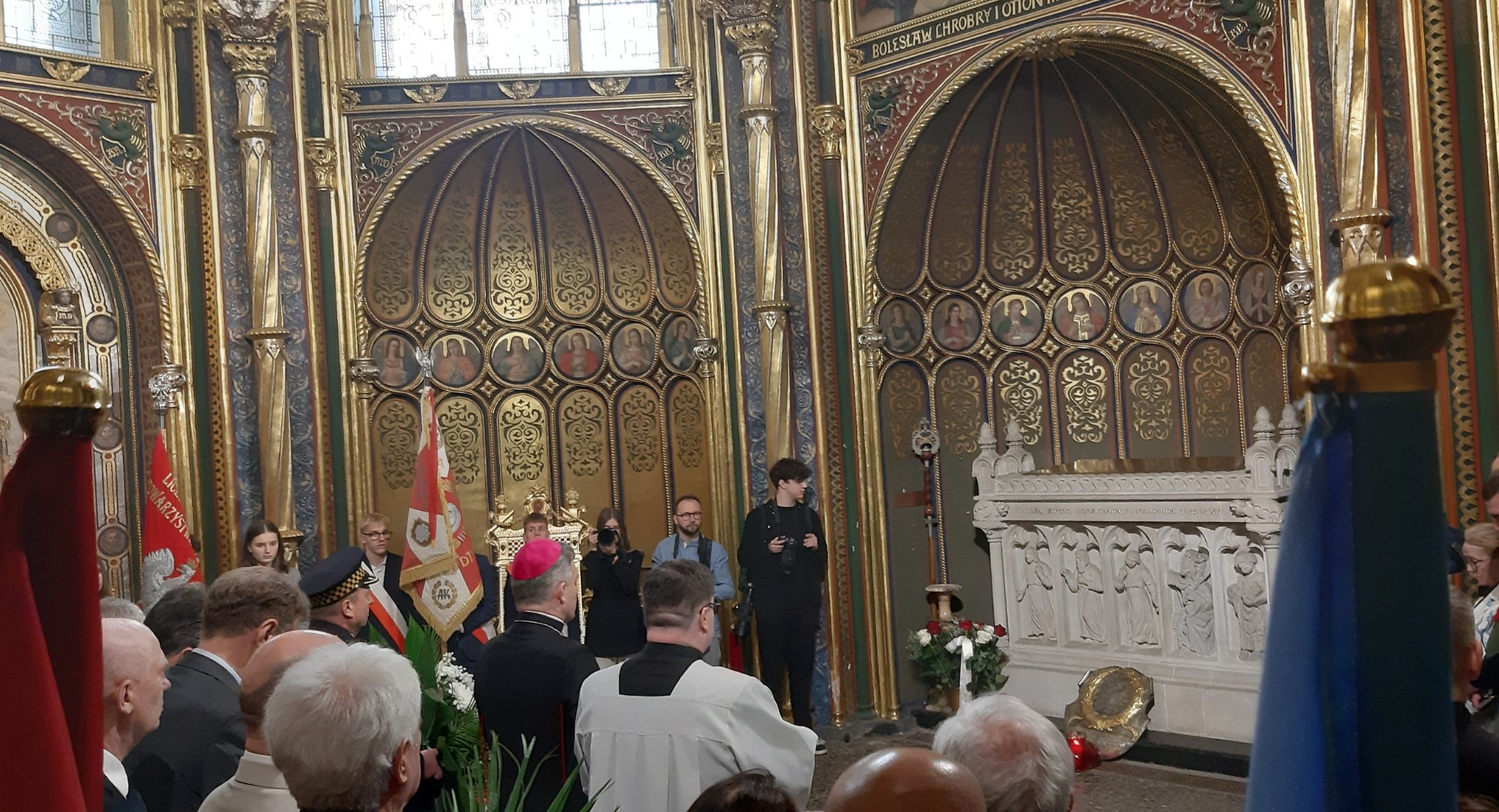 Po mszy modlono się przy sarkofagu Bolesława Chrobrego w Złotej Kaplicy, a następnie przedstawiciele władz lokalnych oraz zgromadzeni złożyli wiązanki kwiatów i zapalili znicze. Naszą szkołę reprezentował poczet sztandarowy. [KR]