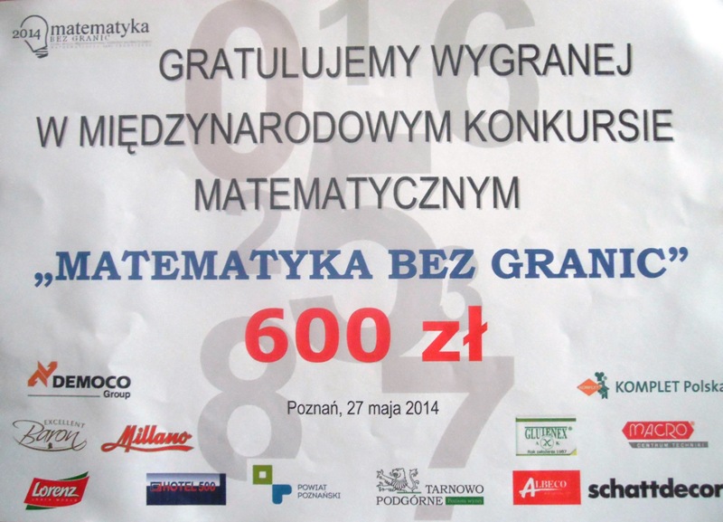 W bieżącym roku szkolnym w „Matematyce bez granic” uczestniczyły dwie klasy z naszej szkoły – klasa 3ga i 3gb.