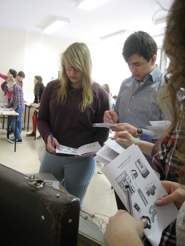 Po krótkim wstępie pod tytułem „jak osiągnąć sukces w nauce języka” przyszła kolej na główną część programu, czyli zadania dla uczestników: w auli zgromadzono zdjęcia oraz nieco rekwizytów znanych z NRD - choćby aparat fotograficzny firmy Praktica; wśród eksponatów odnaleźć trzeba było odpowiedzi na pytania - o zabytki znane z Berlina, symbole i sławne postaci NRD, kontrabandę…