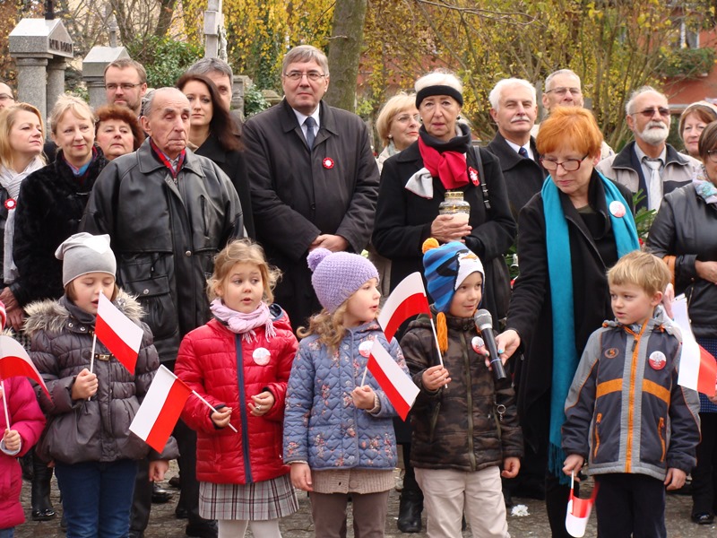 Podczas uroczystości przypomniano walkę Polaków o niepodległość od czasów rozbiorowych po dzień dzisiejszy. Uczestnicy odmówili modlitwę za poległych a dzieci z Przedszkola nr 71 przedstawiły krótki program artystyczny.