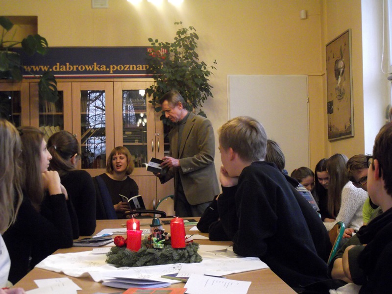 Jeszcze nie świąteczne spotkanie 4.grudnia br. uczniowie naszych szkół mieli niecodzienną przyjemność spotkania pana Andrzeja Sikorskiego, z zawodu archeologa, a z pasji poety o godnym zazdrości dorobku artystycznym.