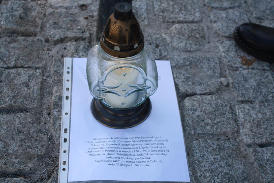 Skwer przy skrzyżowaniu ulic Przybyszewskiego i Dąbrowskiego, dzięki staraniom Stowarzyszenia Przyjaciół Szkoły im. Dąbrówki, został nazwany imieniem Ireny Bobowskiej, uczennicy Państwowej Uczelni Żeńskiej im. Dąbrówki w Poznaniu w latach 1928–1939, harcerki z VI Drużyny im. Anieli Tułodzieckiej, sodaliski mariańskiej, bohaterki polskiego podziemia.