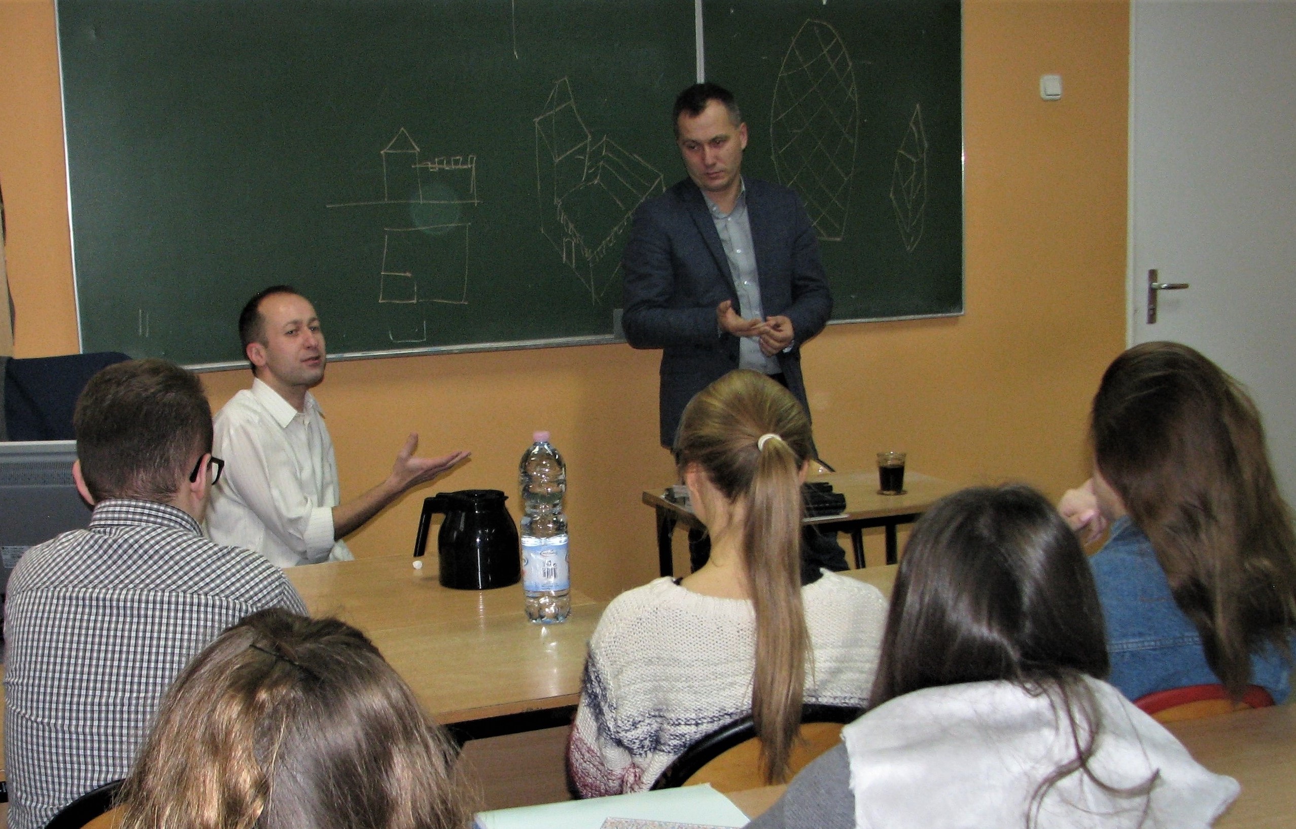 Michał Mytkowski zaprosił tym razem kolegę architekta Marcina Bartza, który podzielił się refleksjami na temat mechanizmów decydujących o pomyślnym wchodzeniu w zawód i osiąganiu pozycji w środowisku architektów. Uczniowie dowiedzieli się, co należy zrobić, aby o wyborze zawodu nie decydował przypadek a przemyślany plan działania.