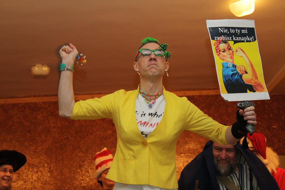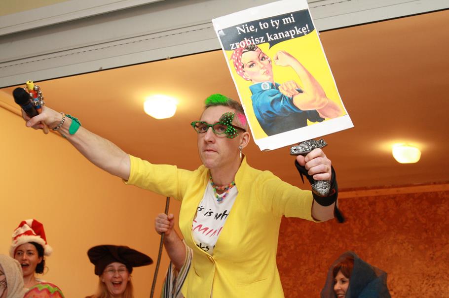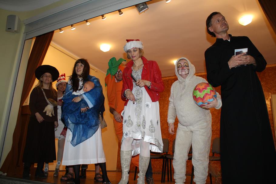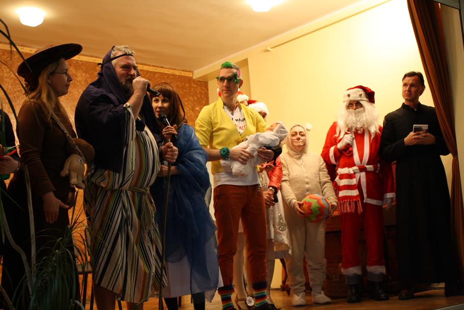 Święta Rodzina spotkała się na scenie z bohaterami komercyjnej kultury popularnej: Gwiazdorem i Śnieżynkami, Królikiem Wielkanocnym, Księdzem, Gangiem Świeżaków, Hellowenową Dziewczynką i Feministką. Trochę wszystkich zaskoczyła interwencja Policjantów, którzy wylegitymowali Pana Dyrektora i podjęli próbę spacyfikowania „nielegalnego zgromadzenia”.