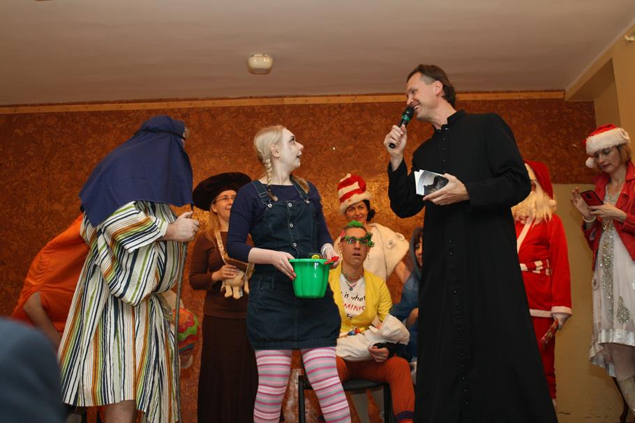 Żartobliwą farsę przerwało pytanie skierowane przez Świętego Józefa do publiczności: „Idziemy z Aleppo… Czy zaprosicie nas do swoich domów, kiedy zapukamy do waszych drzwi?” Kilka minut zadumy nad sprawami ważnymi i trudnymi wymusiła finałowa „Kolęda dla Tęczowego Boga”. [RN]