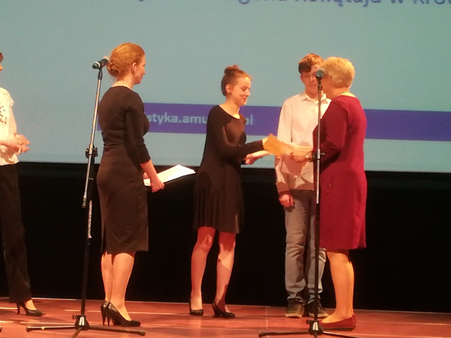 W XII Edycji Konkursu Literackiego o Nagrodę FanFila organizowanego przez Wydział Filologii Polskiej na UAM w Poznaniu Julia Rycyk z kl. I B zdobyła ex aequo III miejsce w kategorii przekład. Pod opieką p. prof. Renaty Ayeb tłumaczyła opowiadanie Joan Aiken pt. "Prelude" z tomu "The Serial Garden". Gala wręczenia nagród odbyła się w C.K. Zamek i uświetniło ją spotkanie z poetą Marcinem Świetlickim.