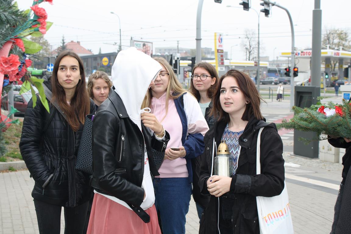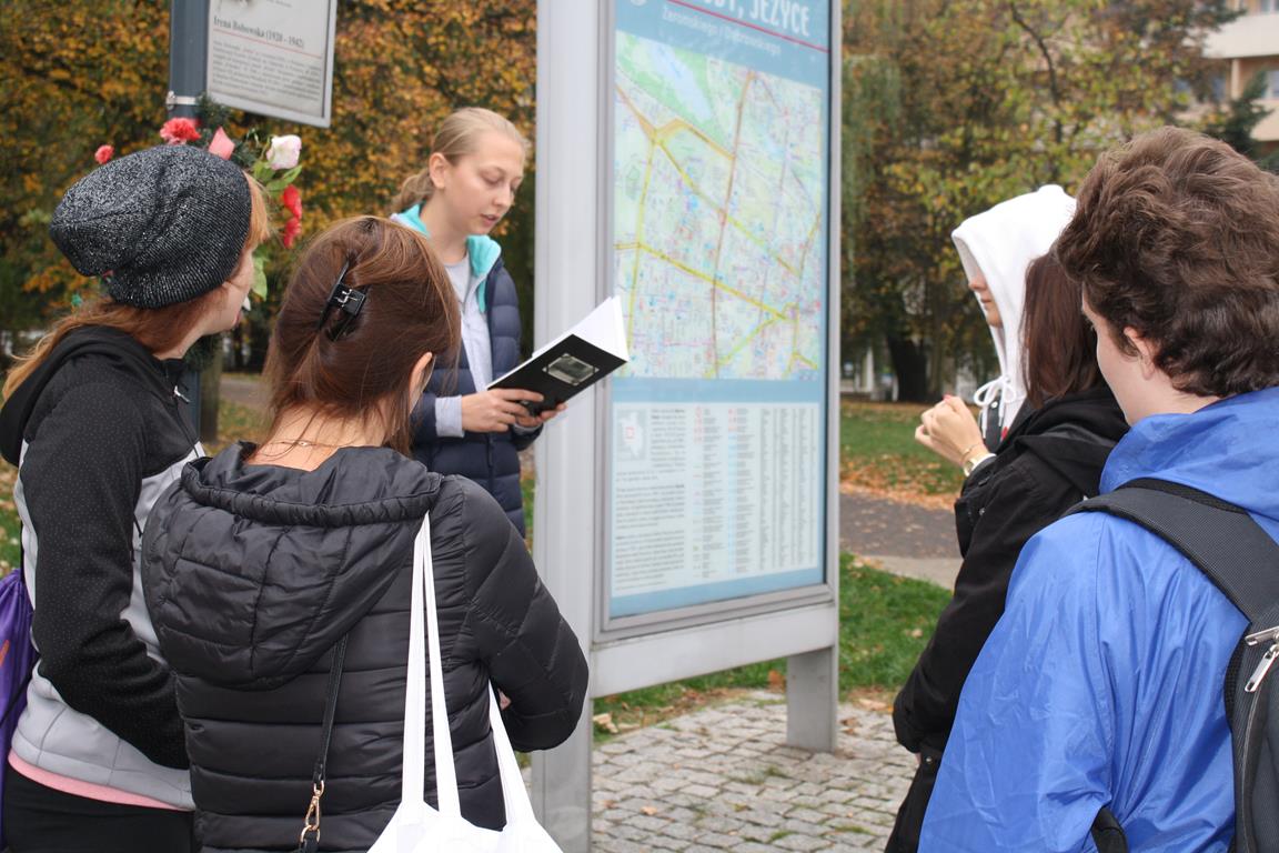 Grupie uczniów pod opieką pań Magdaleny Dyzert i Marii Dolaty towarzyszyły absolwentki szkoły - Dorota Żaglewska i Grażyna Olszewska, które czynnie włączyły się w opowieść o naszej bohaterce.