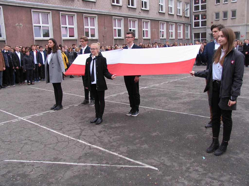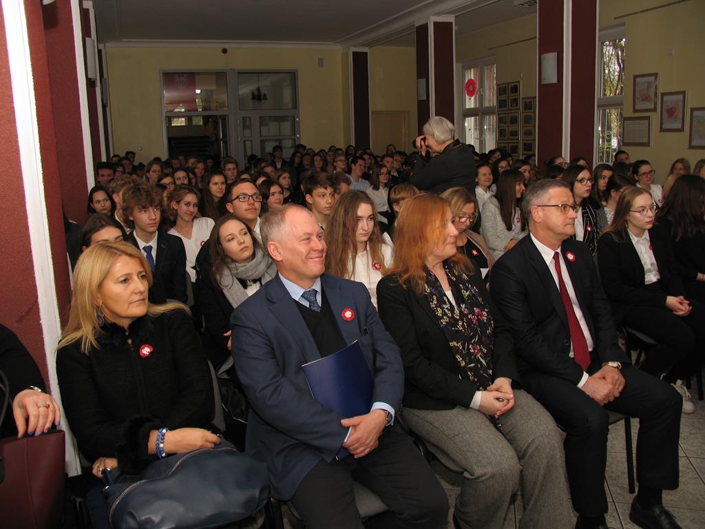 W szkolnej auli wysłuchaliśmy ciekawych wykładów Gości. Profesor UAM dr hab. Przemysław Matusik opowiedział o drogach do niepodległości, pani Anita Dałkowska – przewodnicząca Rady Rodziców – podzieliła się refleksjami o różnych aspektach wolności a pani Grażyna Sobierajska-Mormol ze Stowarzyszenia Przyjaciół Szkoły przypomniała losy osób ważnych dla historii szkoły. Swoje wykłady miali też pan dyrektor Paweł Kozłowski i Karol Maćkowiak z klasy 2e, który przy pomocy koleżanek i kolegów ze szkolnego Klubu Brydżowego przedstawił walkę o niepodległość, zwracając uwagę na analogię tych wysiłków do licytacji w czasie rozgrywki brydżowej. Absolwentki - pani Grażyna Sobierajska-Mormol i pani Wacława Wawrzyniak-Małecka [Stowarzyszenie Przyjaciół Szkoły] - w barwny sposób opowiedziały uczniom klas pierwszych, jak wyglądało szkolne życie w czasach ich młodości.