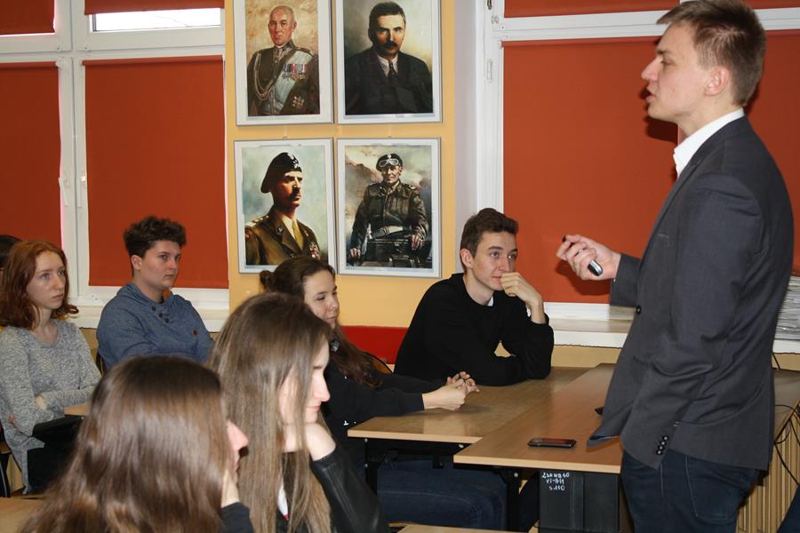 Dzięki dużej otwartości naszego gościa prelekcja przebiegała w miłej i swobodnej atmosferze, a dzięki przygotowanej przez Michała prezentacji multimedialnej, wzbogaconej krótkim quizem, udało nam się zapamiętać więcej istotnych szczegółów. [Damian Stessel, 2A]