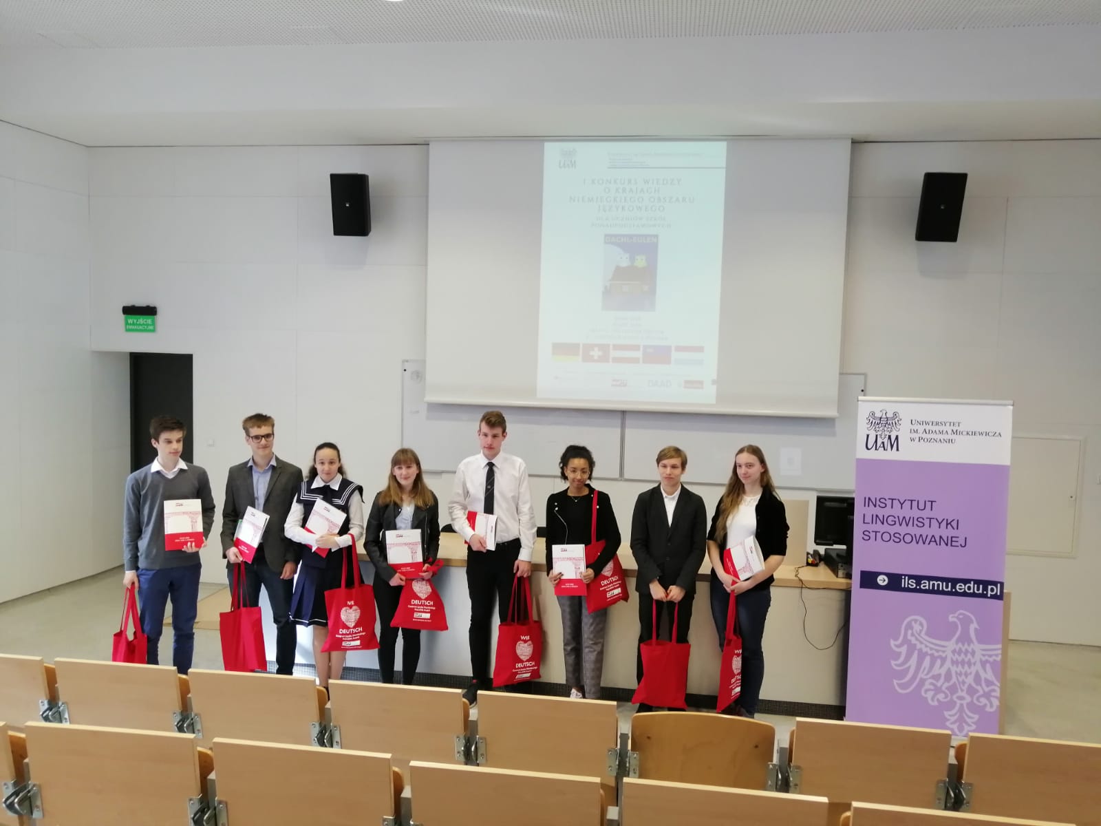 9 kwietnia 2019 na Wydziale Neofilologii UAM w Instytucie Lingwistyki Stosowanej odbył się konkurs wiedzy o krajach niemieckiego obszaru językowego DACHL-Eulen. Konkurs zorganizowany został przez Zakład Dydaktyki Kultury i Mediów i skierowany był do uczniów szkół ponadpodstawowych, którzy przez 60 minut odpowiadali na zamknięte i otwarte pytania w języku niemieckim z zakresu historii, geografii i kultury Niemiec, Austrii, Szwajcarii, Księstwa Liechtenstein oraz Luksemburga.