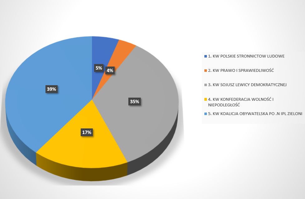 KW Konfederacja Wolność i Niepodległość – 72 głosy,
