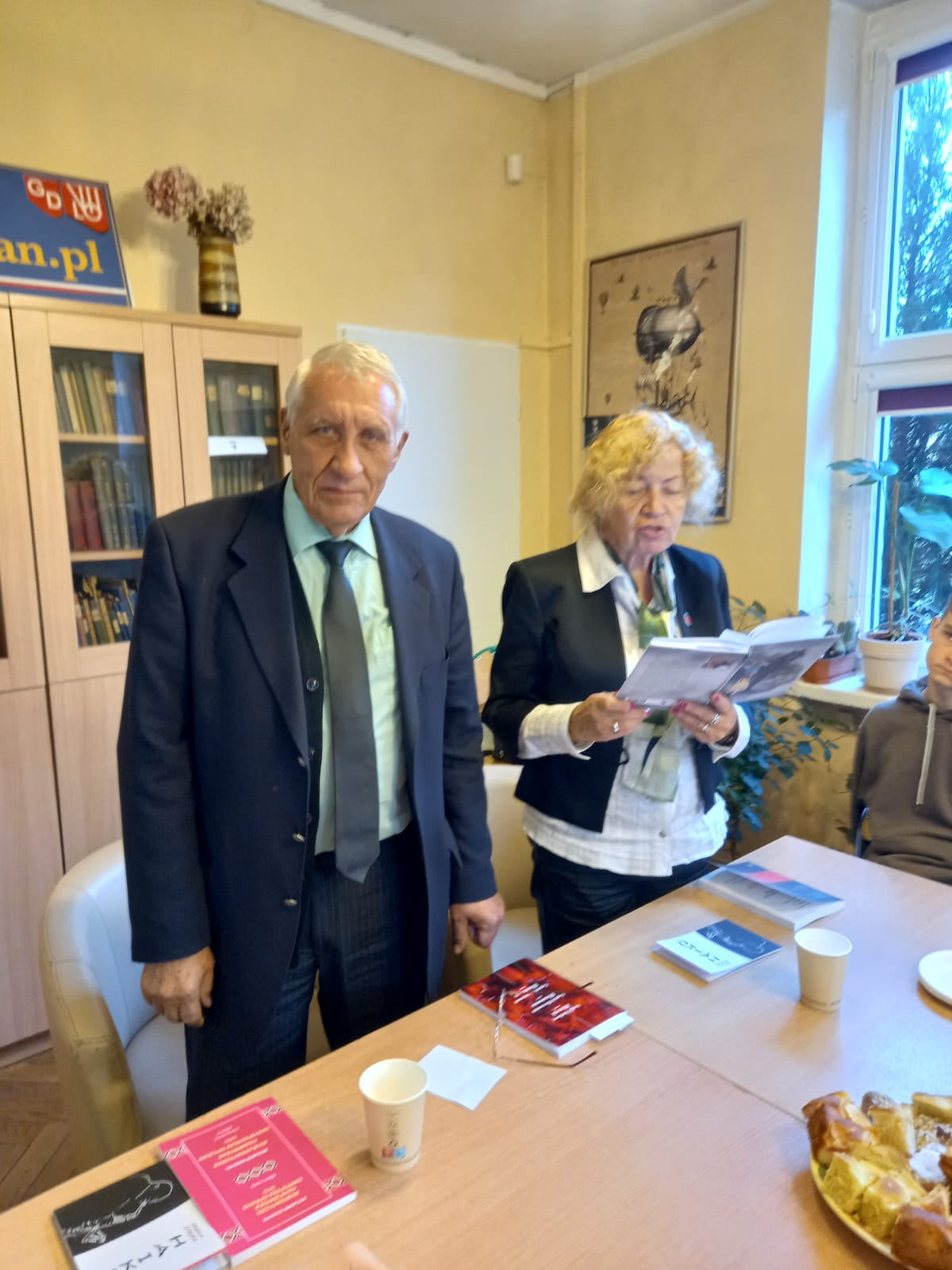 27 października mieliśmy przyjemność gościć ciekawych poetów. Przyjechała do nas z Kalisza pani Urszula Zybura, która specjalizuje się w tworzeniu haiku, lubi aforyzmy, ale pisze każdego rodzaju wiersze. Przybył także pan Sergiej Shelkovij z Charkowa, z samego serca wojny. Warto podkreślić, że po zakończeniu podróży, zamierza wrócić do Ojczyzny i dalej tworzyć wśród hałasu bombardowań. Nie wyobraża sobie innego scenariusza… Zaprezentował młodzieży właśnie wiersze, pisane podczas zamieszek wojennych, odsłonił wiele trudnych, osobistych stanów, emocji… Powiedział, że Jego bronią jest pisanie wyłącznie w języku ukraińskim. Zapytany o nienawiść do najeźdźcy zapewnił, że w sferze Jego poezji nie ma miejsca na takie uczucie.