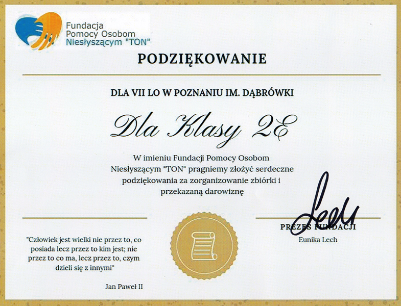 13 lutego 2019 r. grupa informatyczna klasy 2D odwiedziła Wydział Fizyki UAM by uczestniczyć w wykładzie pt. „Sztuczna Inteligencja - jak to działa?". Licealiści podczas wyjścia byli pod opieką pana Janusza Proniewskiego.