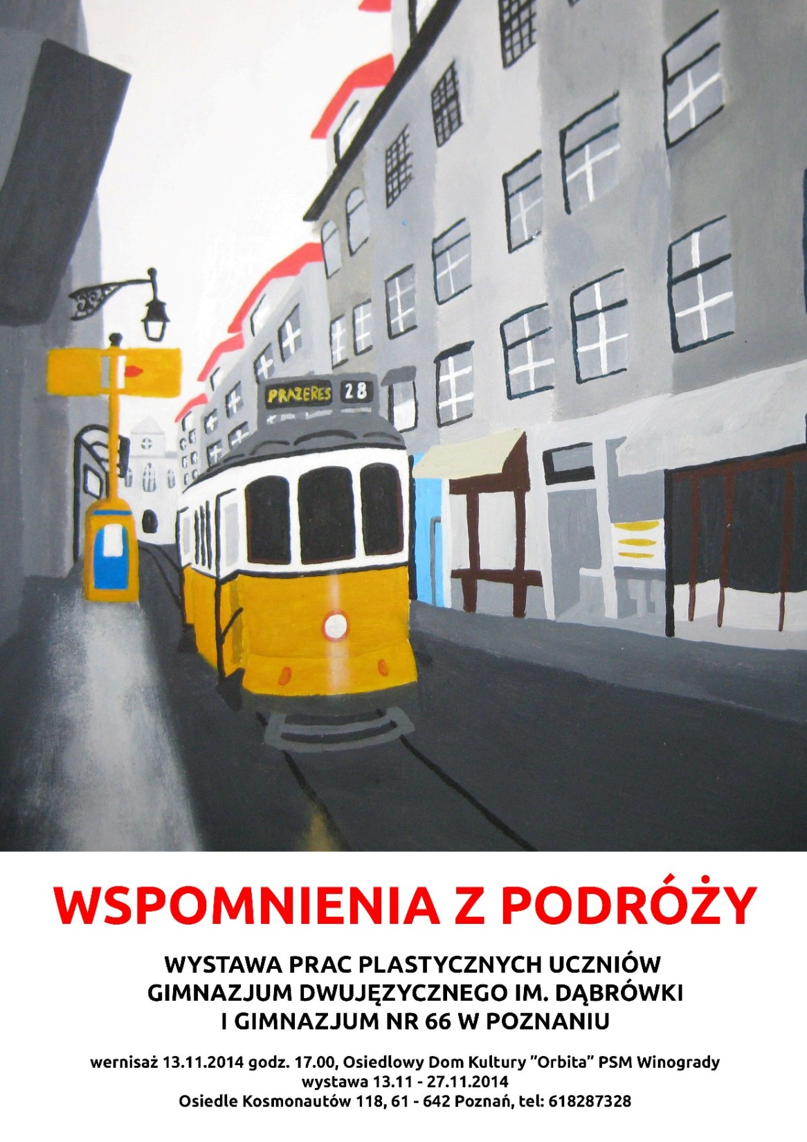Zapraszamy na wernisaż wystawy pt.: Wspomnienia z podróży, na której prezentowane będą prace plastyczne uczniów klas trzecich gimnazjum. To efekt ich działań twórczych na zajęciach artystycznych - plastycznych.