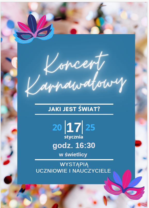 W tym roku hasło przewodnie Koncertu Karnawałowego stanowiło pytanie "jaki jest świat? Jak wiadomo nie ma prostej odpowiedzi ... istotę świata stanowi duże urozmaicenie... podobnie było z koncertem!