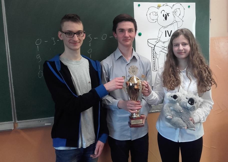 Drużyna, w składzie: Piotr Błaszyk, Maria Banaszkiewicz, Jakub Kozak (wszyscy z kl. 3ga), pokonując w dwuetapowych eliminacjach sześćdziesiąt drużyn z wielkopolskich gimnazjów, awansowała do finału matematyczno-informatycznego konkursu KOALA (KOmbinatoryka, ALgorytmika, logikA), organizowanego przez: V LO w Poznaniu, Wydział Matematyki i Informatyki UAM oraz Wydział Informatyki Politechniki Poznańskiej.