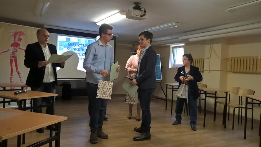 Jakub Królak i Karol Maćkowiak, uczniowie klasy 3GB, zajęli III miejsce w Międzyszkolnym Konkursie Wiedzy o Poznaniu, który odbył się 23 lutego. [M D-R]